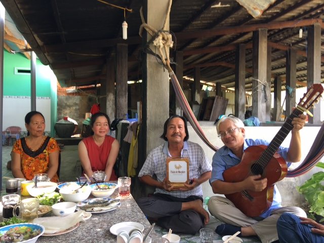 Không thể không ghé nhà mình, căn nhà tuềnh toàng cấp 4 còn đó với biết bao kỷ niệm. Nhớ xưa vợ chồng Thân Trọng Minh, cùng Lữ Quỳnh/ Kim Nhung đã đến trú một đêm trên nền gạch. Rồi Hoàng Quốc Bảo cũng từng ghé uống dừa Lagi. Cũng phải tạt ngang Đập Đá Dựng một chút. Ghé Ngảnh ăn cơm, nơi có ngôi mộ cậu Nguiễn Ngu Í. Đi qua rừng thanh long ngút ngàn dưới chân núi Tà Cú về Phan Thiết, Mũi Né. Sáng hôm sau đã đi Bàu Trắng và ghé Hòn Đú ăn trưa. Chuyến này về Phan Thiết có ghé thăm nhà thơ Liên Tâm và dĩ nhiên không quên cho các bạn ăn bánh căn! Thôi, coi hình cho vui thôi nhé. Lúc này mình làm biếng viết quá rồi bạn ơi.