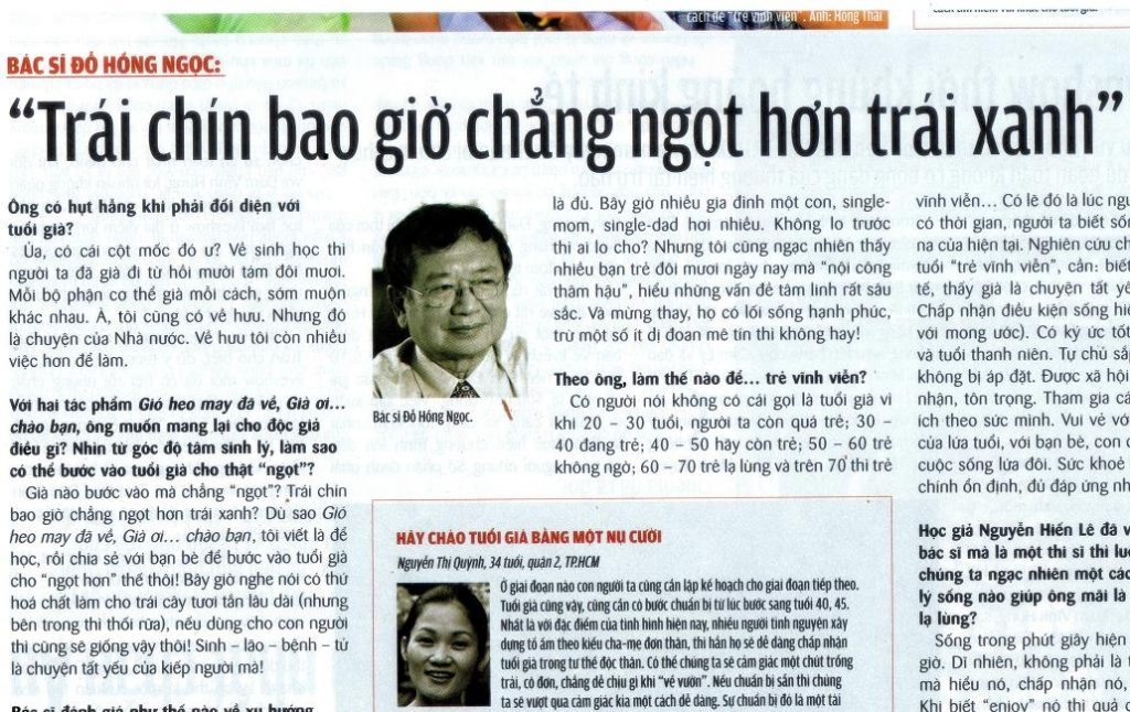 Như người thầy thuốc lên non hái lá để tự chữa bệnh cho mình, thử nghiệm bằng chính mình, rồi mới phục dược cho Người, mỗi trang viết của nhà văn-bác sĩ Đỗ Hồng Ngọc hay nhà thơ Đỗ Nghê đều mang dấu ấn của sự trải nghiệm. Ngay từ cuốn sách đầu tiên LUV được đọc “Viết cho các bà mẹ sinh con đầu lòng” ( cũng hơn 20 năm rồi) đến quyển sách gần đây “Thấp thoáng lời Kinh” mỗi cuốn sách có những sẻ chia, nâng đỡ, an ủi rất riêng giúp người đọc bớt hoang mang trong lúc mù sương. Càng đọc sách của anh Đỗ Hồng Ngọc, LUV càng nhận ra Thần Tượng của mình thật gần gũi, gần đến mức có thể học tập được rất nhiều ở anh. Cho nên, có một câu hỏi, LUV muốn hỏi ở đây ” Đến khi nào thì Hồi ký Đỗ Hồng Ngọc được xuất bản ạ?” (23.3.2013)