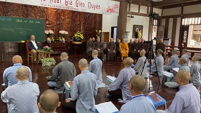 Trò chuyện cùng các hành giả khoá tu “xuất gia gieo duyên”… với sự tham dự của quý thầy giáo thọ.