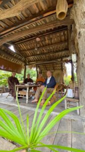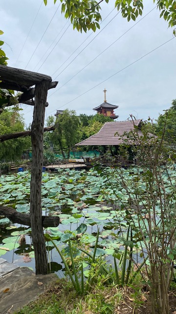 Sau buổi thuyết giảng ở Pháp đường chánh niệm, đã cùng các vị giáo thọ trẻ thăm hồ sen Khánh An, nơi mái chòi tranh quen thuộc mà tôi rất thích từ nhiều năm trước nơi này.
