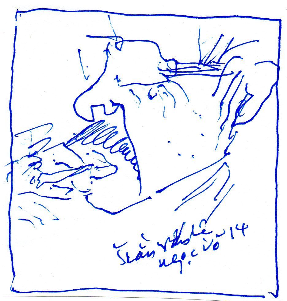 Ghi chú: Coi cái hình rất ngầu của nhà thơ Trần Vấn Lệ trên nguyetmai.wordpress.com tôi cao hứng nguệch ngoặt mấy nét “trời ơi”… và viết đôi dòng gởi bạn.