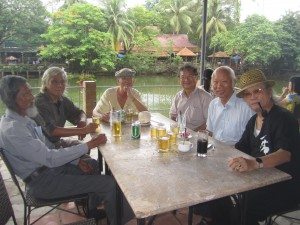 Phan Bá Thụy Dương, nhà thơ, nhà báo, người “khoái hoạt” nhất trong nhóm, cùng tuổi 73, đẹp trai, phong độ, hào hoa, chuyện trên trời dưới đất, đông tây kim cổ gì cũng biết… Kế bên là họa sĩ Hồ Hữu Thủ, không phải cựu học sinh PBC, là bạn của TYThảo và ĐHNgọc. Bìa trái là Trần Yên Thảo, nhà văn, cùng tuổi 73, nhưng để râu tóc như một tiên ông, cũng là cựu học sinh PBC, nhưng vào trễ hơn!