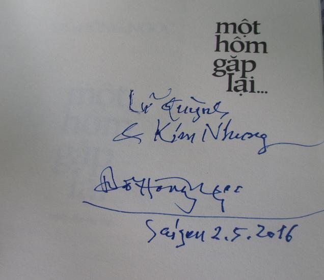 Tặng Lữ Quỳnh & Kim Nhung cuốn tùy bút “Một Hôm Gặp Lại” và nói toàn bạn bè mình không trong đó nhé. Nào Trần Hoài Thư, Từ Thế Mộng, Đinh Cường, Lữ Kiều, Lữ Quỳnh, Lê Ký Thương…