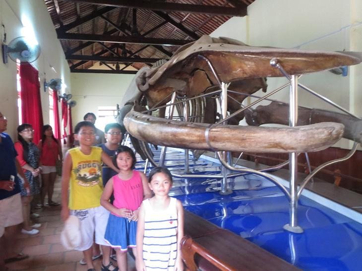 Lần này vì có các cháu nội ngoại cùng đi nên mình “tranh thủ” giới thiệu Phan Thiết cho tụi nhỏ. Đi qua bãi đồi dương Vĩnh Thủy, ăn trưa ở quán gần bãi Thương Chánh, ghé thăm Vạn Thủy Tú, nơi có bộ xương cá voi to nhất Đông Nam Á, trường Dục Thanh, chùa HN… nơi ngày nhỏ mình ở nhà Cô Hai đi học trường Cô Tiểu Sính cạnh bờ sông. Vạn Thủy Tú được xây năm 1762 để thờ Cá Ông (cá voi).