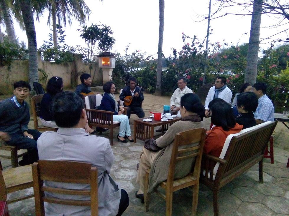 Hình như ai cũng đã từng quen biết dù chưa gặp bao giờ. Chiều Hội An lạnh 18 độ. Mưa đã ráo hột. Mọi người kê ghế ra sân, quây quần nghe Thu Vàng hát mấy bài của Phạm Duy, của Trịnh Công Sơn và dĩ nhiên có Mũi Né của Hoàng Quốc Bảo phổ thơ Đỗ Hồng Ngọc.
